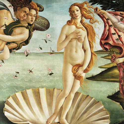 Consider visual motifs from famous works of art, which you could incorporate into your collection of symbols and motifs. In paintings like ‘The Birth of Venus’ by Botticelli.