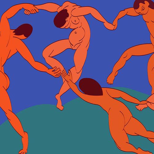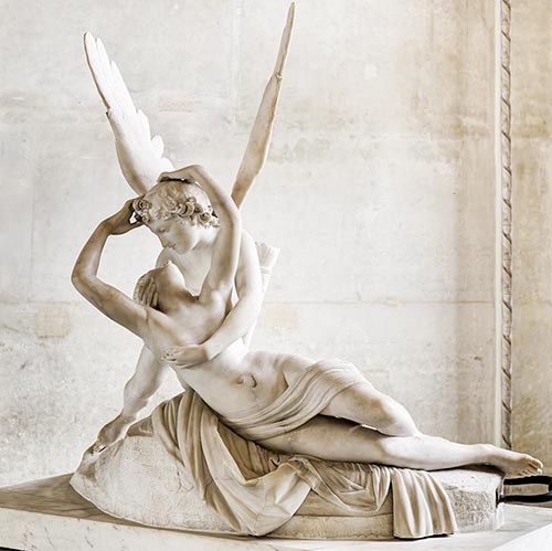 Venus emerges from the sea on a seashell, symbolising her transformation to earthly voluptuousness and her spiritual purity. ‘Psyche Revived by Cupid’s Kiss’ by Canova depicts Psyche (the soul) awakened by love. It is sculpted in a circular composition alluding to the eternal quality of healthy love, with Cupid’s wings reaching heaven-ward, and Psyche’s arms also reaching upward to receive love. ‘The Dance’ by Henri Matisse describes a communal love, shared by friends, loved ones, and children.